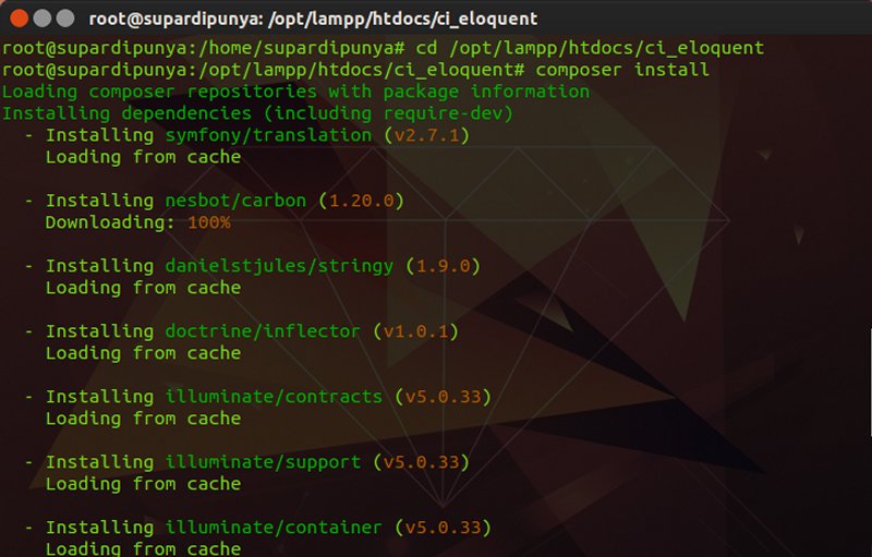Eloquent ORM adalah Object Relational Mapping bawaan dari framework Laravel. Eloquent ORM memudahkan developer untuk bekerja dengan database. Eloquent ORM memetakan setiap tabel di database ke dalam class model. Dengan ORM kita dapat memetakan tabel-tabel di database beserta relasi ke dalam class-class object dengan menerapkan Object Oriented Programming (OOP). Bagi anda yang menggunakan framework Laravel tentu sudah terbiasa menggunakan Eloquent ORM. Namun tahukah anda kita juga dapat mengintegrasikan Eloquent ORM ke dalam framework Codeigniter. Kali ini kita akan membahas cara Integrasi Eloquent ORM Dengan Codeigniter 3.0.